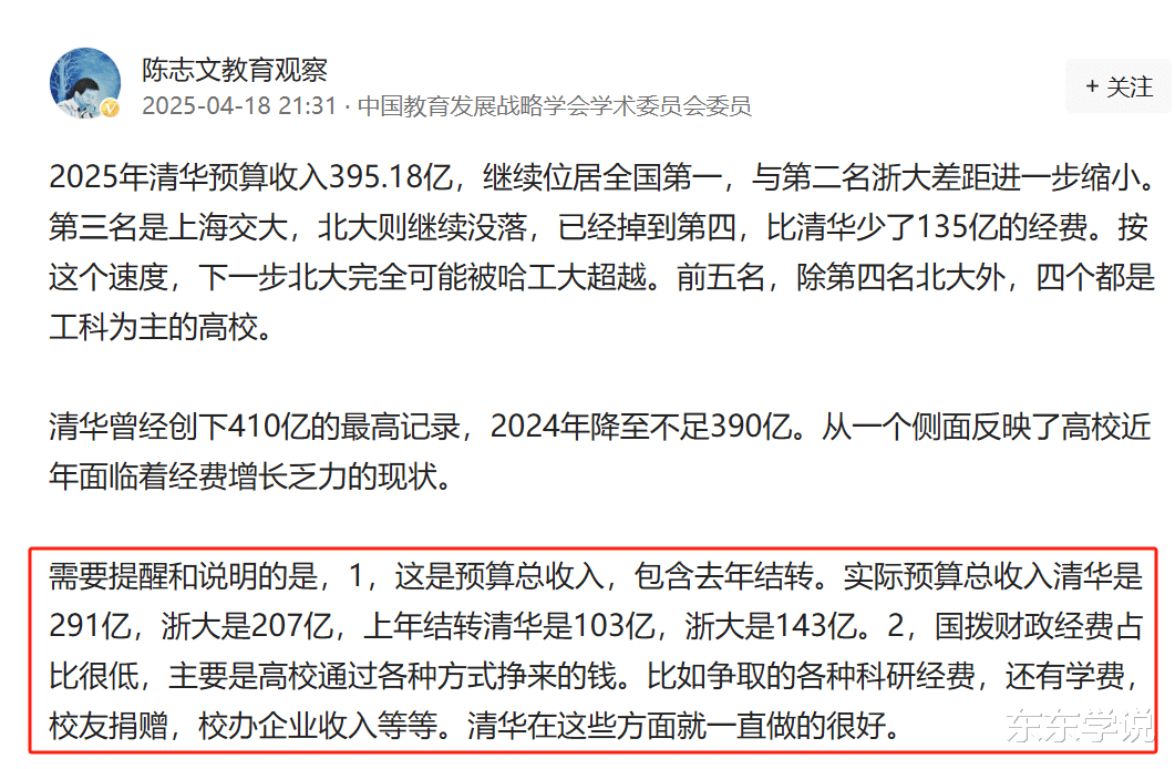 2025年部署高校预算公布,从整体情况看,各家预算都是略有增长,但是幅度不大。很多高校的预算费用多是上年积余下来都;主要来源是科研与技术转让带来的增长,国拨经费占比不高,说明国家对高等教育的支持力度需要再加强!