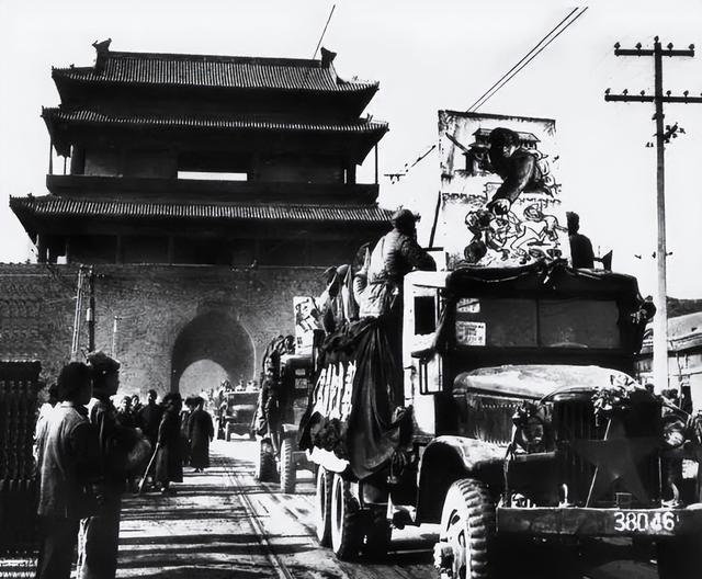 1949年2月3日,整个北平洋溢着欢迎解放军入城的热烈气氛,上午十点,随着四颗信号弹发射成功,入城仪式开始,解放军从永定门进城,最前面是军乐队,接着是装甲车,坦克,炮兵,骑兵,步兵,十点三十分,从珠市口进入前门大街。