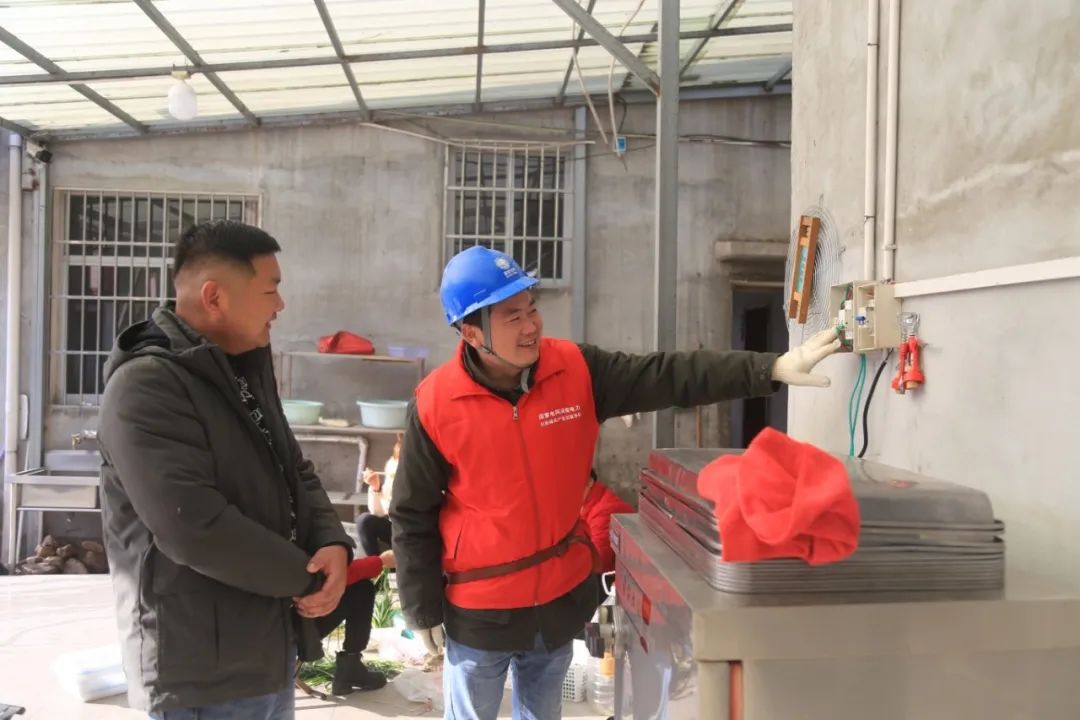 1月21日,新县泗店中心供电所党员严会平与供电所同事一起为泗店乡多家农家饭庄义务排查用电隐患,保障其过年营业期间安全可靠用电,用可靠的电力供应助力泗店乡年味更浓。