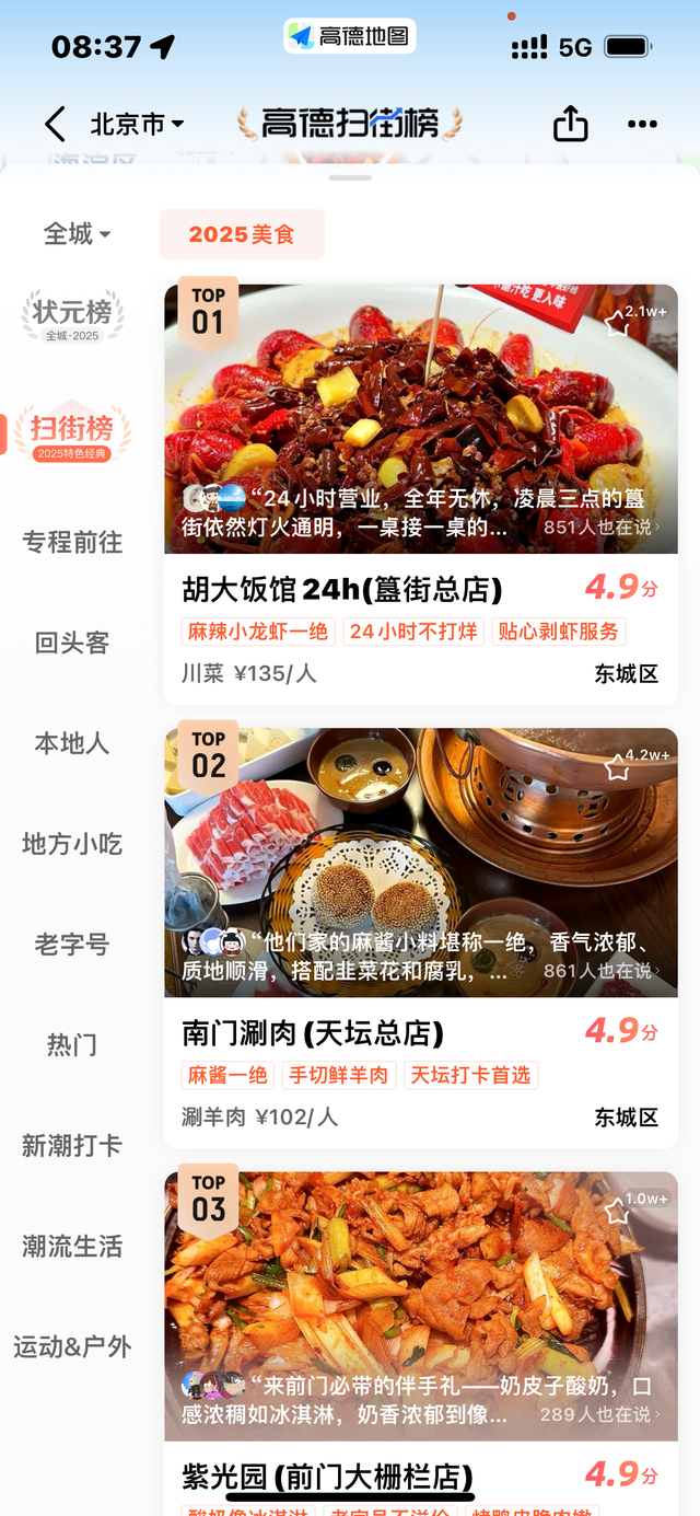 不同于市面上常见的美食玩乐榜单,高德扫街榜纳入了用户的行动指标,将真实的导航到店行为与评价反馈结合起来,避免了常规榜单容易被刷分、注水的问题。这让高德扫街榜成为一个很难被刷榜的产品。