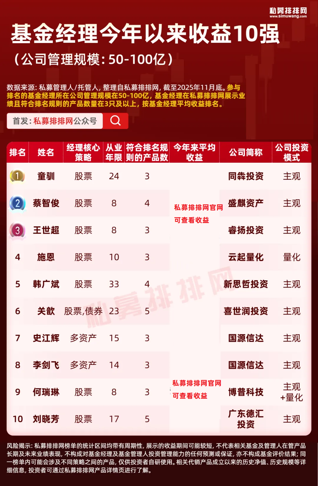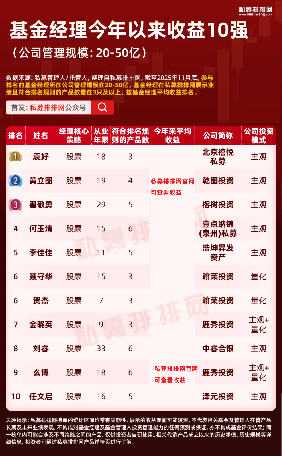 20-50亿:何玉清排名第4!翰荣投资独占两席
