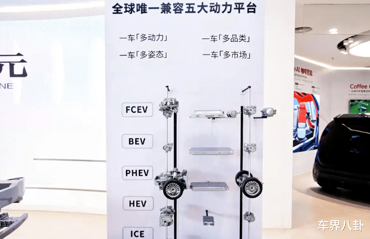 官方说这平台能兼容插混、混动、纯电,甚至还要搞氢能。还要在这个架构上生出50多款车。这就像是一个超级乐高底座,想搭什么搭什么。