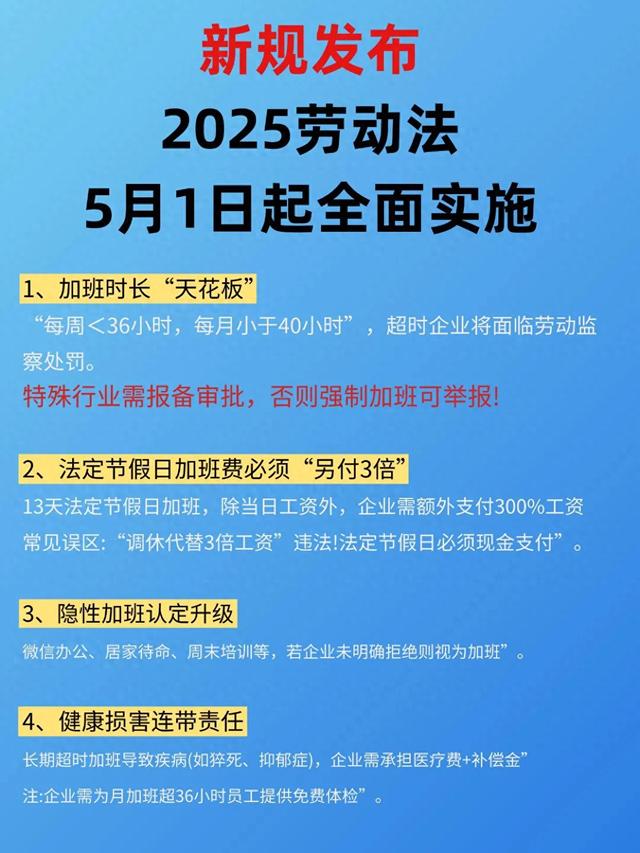 2025劳动法新规,5月1日全面实施,拒绝加班
