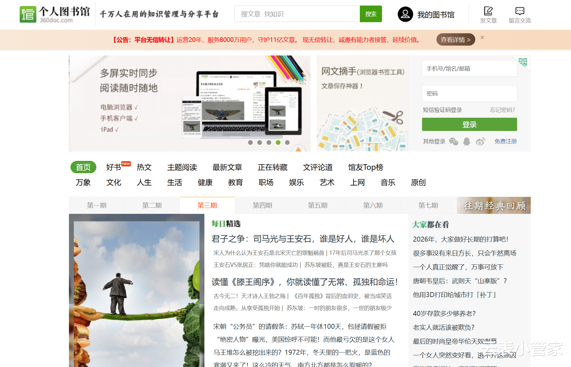 运营了整整20年,积累了8000万用户的360doc个人图书馆,昨天突然宣布要“无偿转让”。这事你听说了吗?