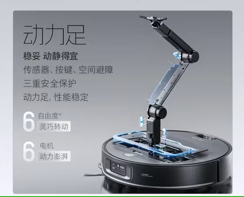 LDS模块也可以升降(好钻进更低矮的家居下面),有自动补光灯(沙发底和床底使用);