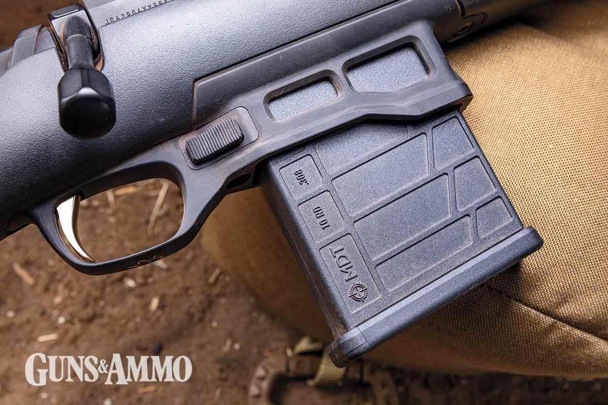 勃朗宁的产品经理几乎考虑并测试了所有可用的弹匣,很快发现不同弹匣差异很大,制造商不同,材料也不一样。勃朗宁挑选出一致性最佳的弹匣,并据此设计底部金属部件,以确保供弹可靠。与X-Bolt Target Max适配最好的两款弹匣,一款是附带的MDT弹匣,另一款是马格普(Magpul)的AICS聚合物弹匣,这两款都有5发和10发容量可选。