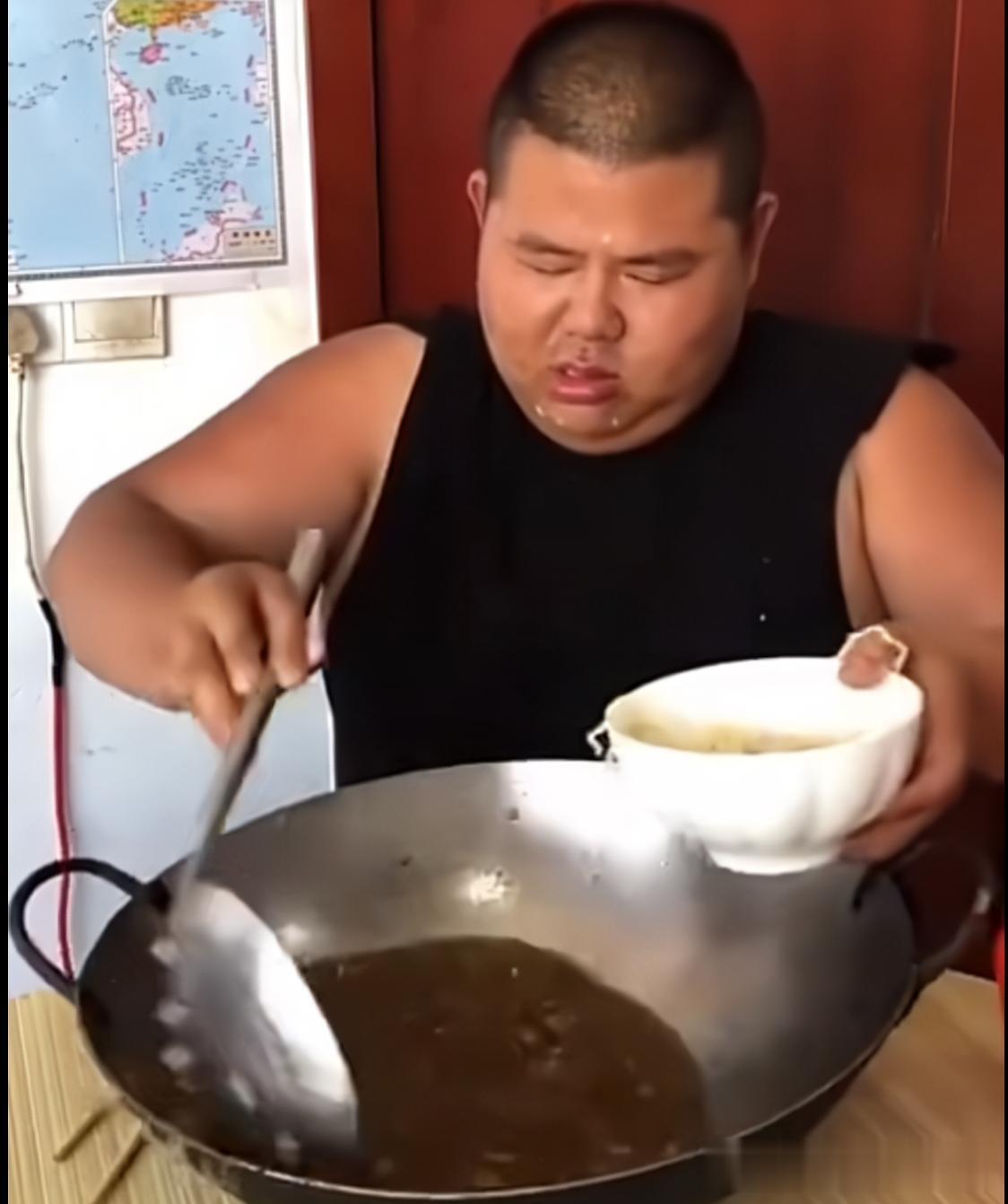 但别急着鼓掌,慢镜头回放里,你能清楚看到:这场“战役”的对手,不是面前那堆面饼,而是他体内即将迎来的热量洪水和钠含量风暴。
