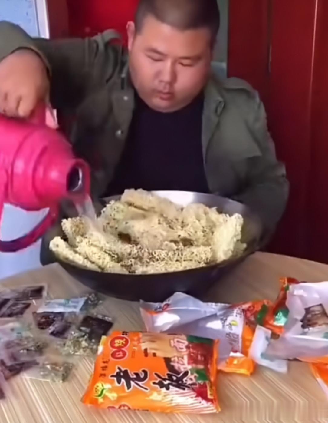 可一旦超过两包,单一的口感、调料的复合味、面条的油腻感就会在舌头和鼻腔“合力反击”,让人直犯恶心。这一关不比胃容量容易,谁能在恶心感来袭前控节奏吃完,谁才算真顶得住。