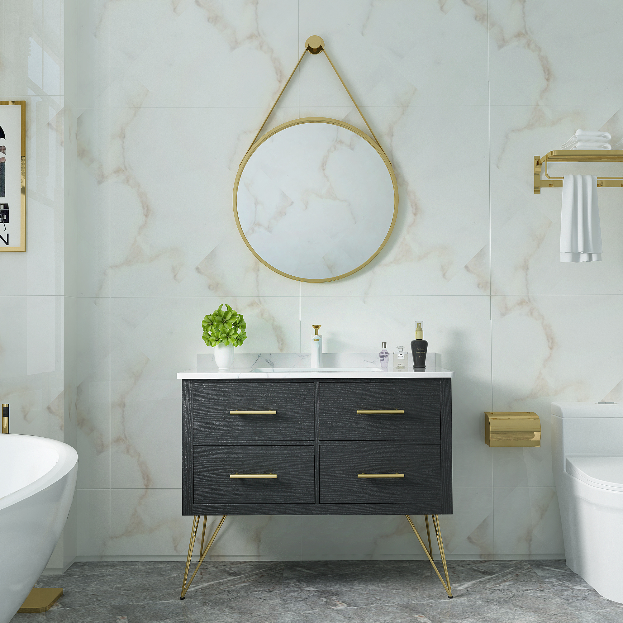 更提倡大家安装悬空式的浴室柜,并搭配一体式的台盆,全然不存在卫生死角,而且其下方悬空的空间还能够收纳洗脸盆这类物品,在颜值方面亦更为出众。