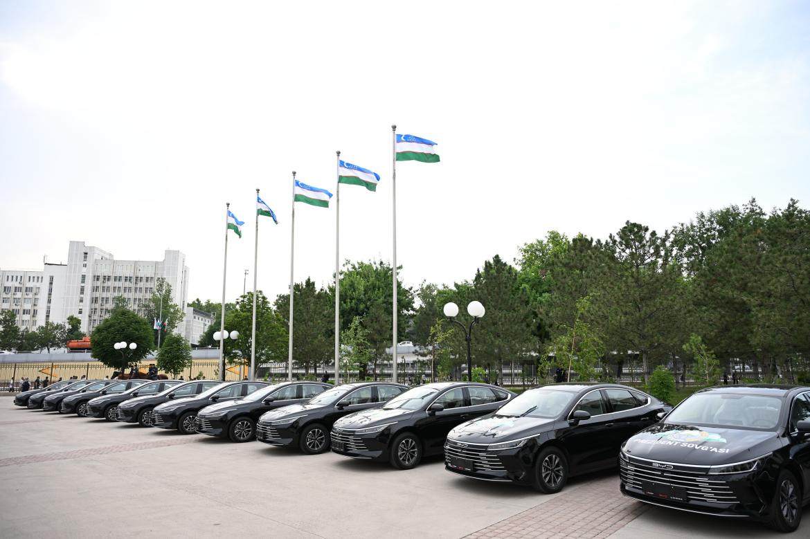 乌兹别克斯坦总统向乌兹别克斯坦国家足球队赠送比亚迪汽车