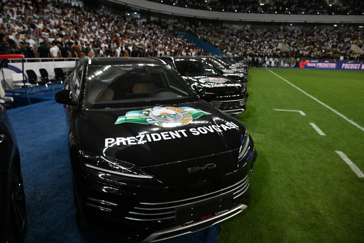 此次赠予乌兹别克斯坦国家足球队的宋 PLUS DM-i 冠军版与BYD CHAZOR(驱逐舰05)车型,不仅象征着绿茵场荣耀与绿色出行的时代交汇,更以「技术 + 本地化」双轮驱动,用技术打造品牌战略,构建起品牌自豪感与创新科技的连接纽带。其中,宋 PLUS DM-i 冠军版以「强性能低排放」的产品特质,成为冠军之师的匹配之选,充分展现产品硬核实力。