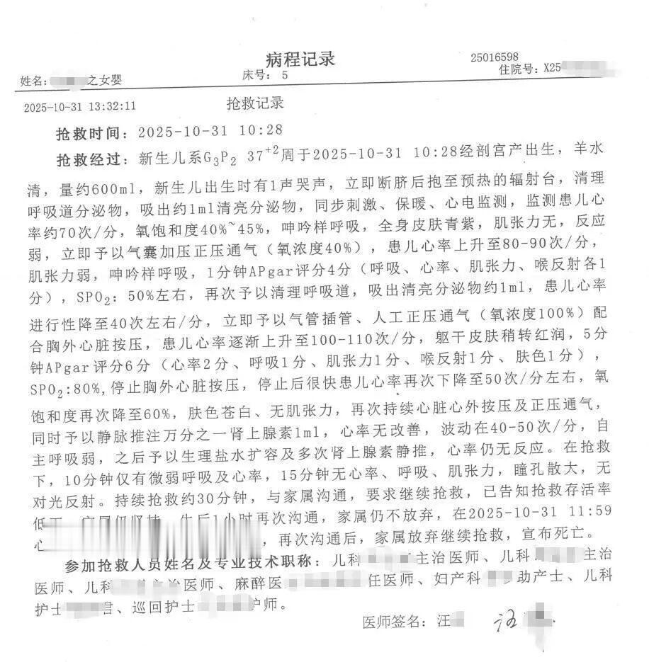 四川一女婴剖腹产出生当天夭折,父亲质疑抢救方向错误,医院回应