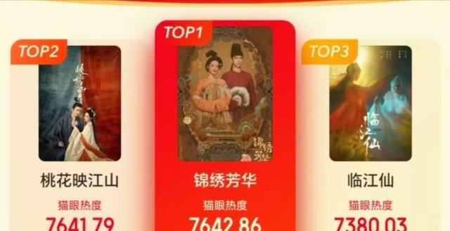 《锦绣芳华》开播3小时,就登顶猫眼热度排行榜,力压孟子义等人的《桃花映江山》和郑凯、赵昭仪等人的《临江仙》。