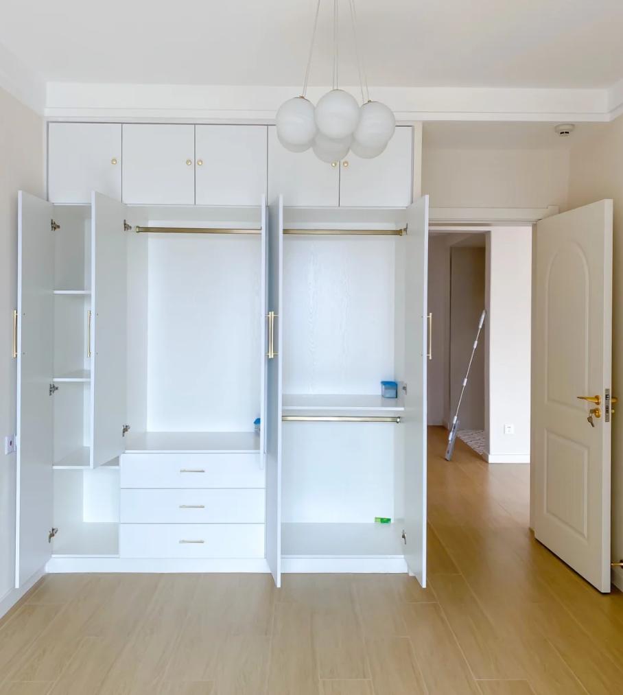 如果卧室未做吊顶且衣柜高度超过2.4米,建议采用分段式柜门设计以提高性价比和实用性。同时避免为了控制高度而额外做石膏封板浪费空间。