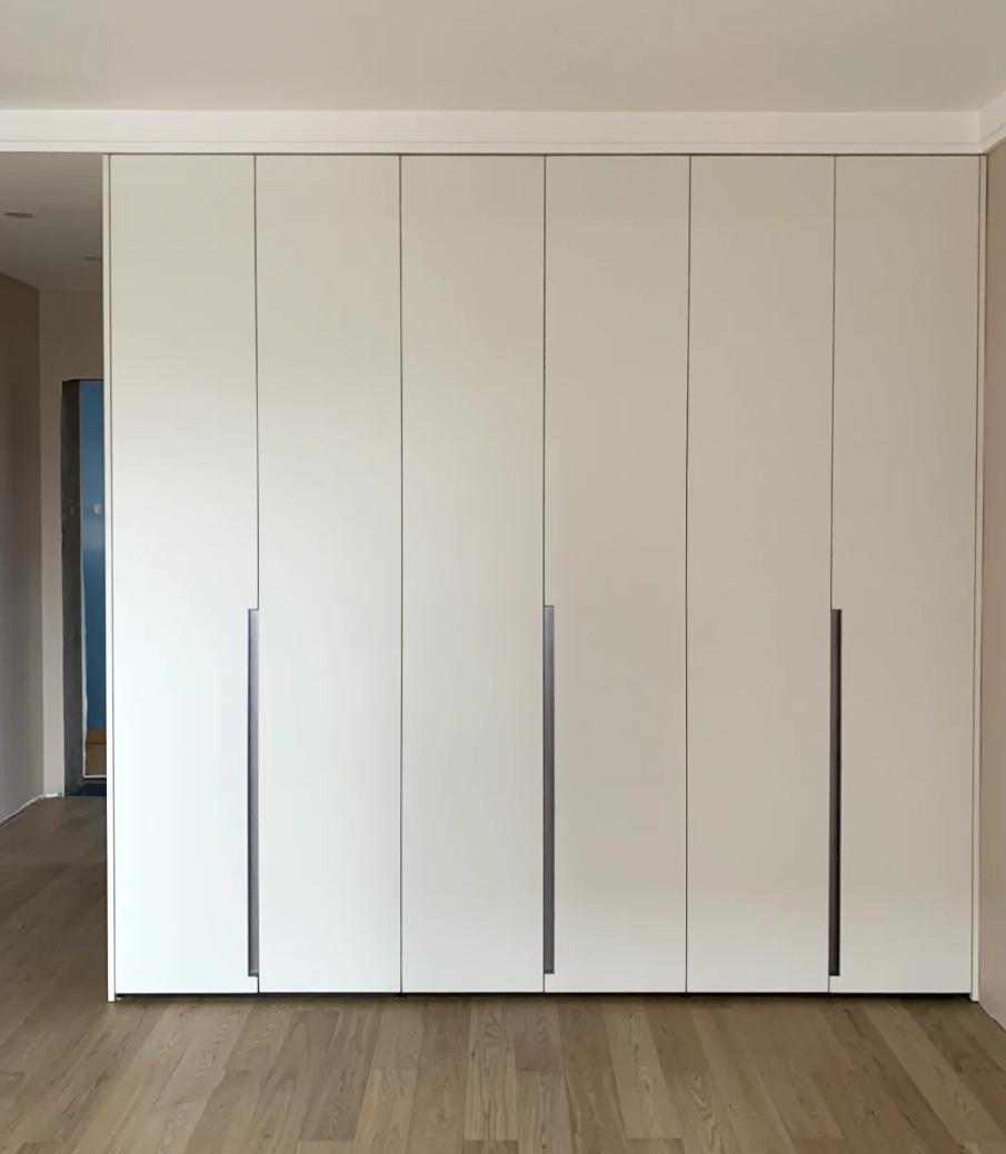 一门到顶的设计之所以受欢迎,很大程度上是因为其高颜值。然而,要确保衣柜与墙体的整体性,墙顶地必须达到百分百的垂直水平。否则,安装完成后可能会出现大小缝的情况,严重影响美观。此外,如果柜门尺寸先定制,而顶面腻子层批得过厚,还可能导致柜门与顶面刮蹭,破坏乳胶漆饰面。