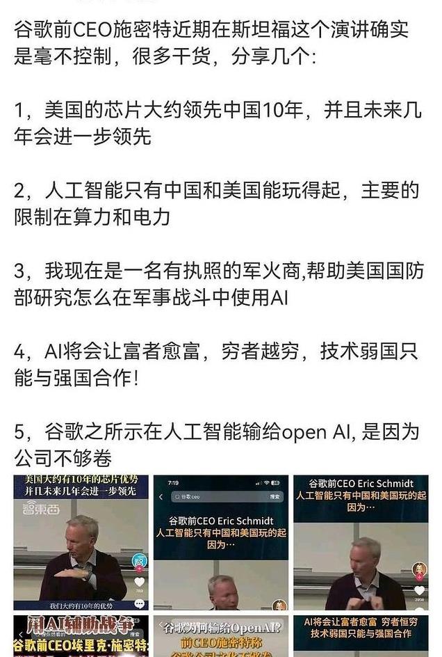 施密特对中国在AI领域的发展给予了高度评价。他认为,中国不仅拥有众多优秀的工程师,还在不断学习和进步。更重要的是,中国政府对AI领域的大力投资为行业发展提供了有力支持。这种政府层面的支持和推动,使得中国在AI领域的发展速度远远超过了其他国家。