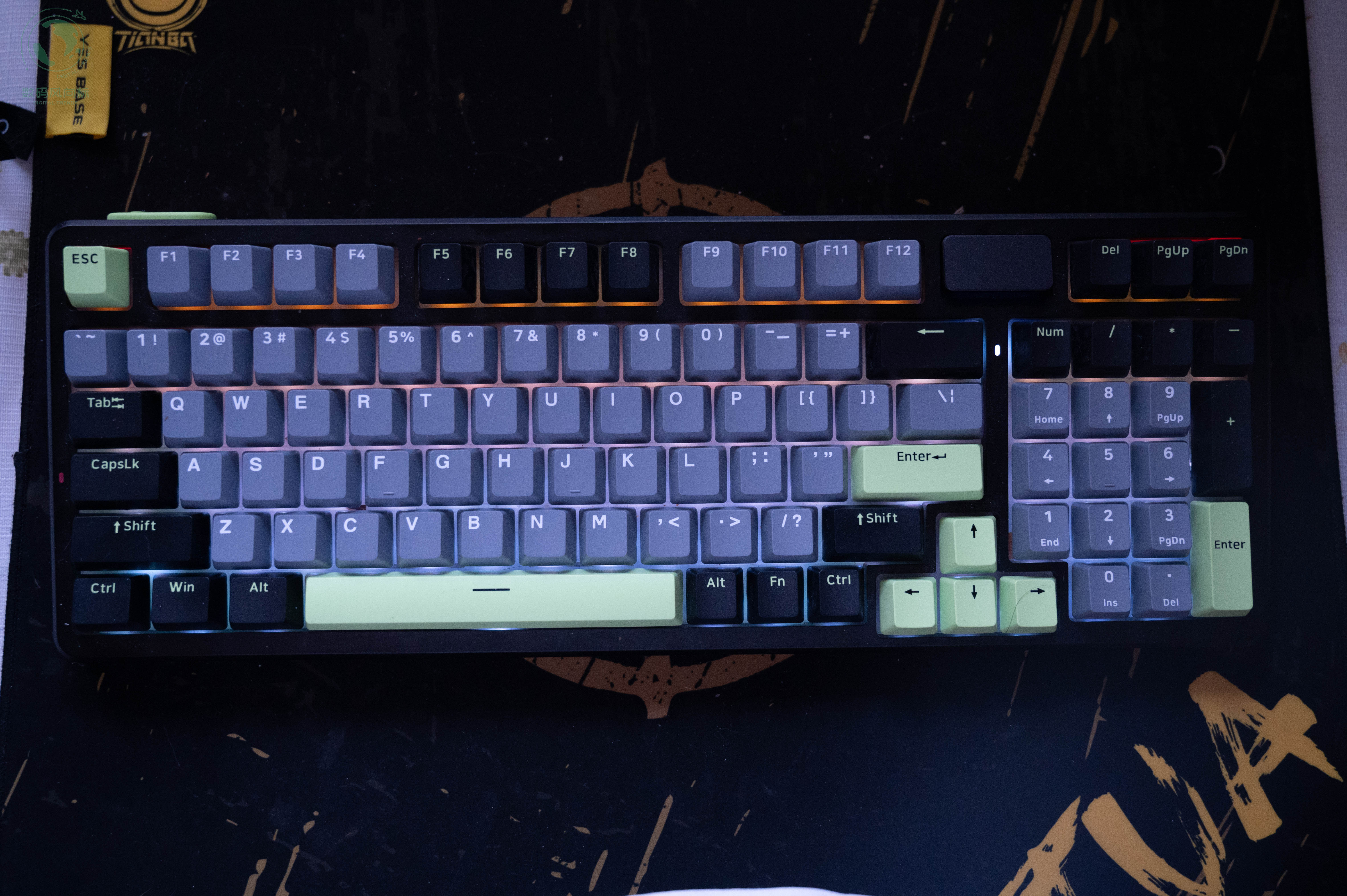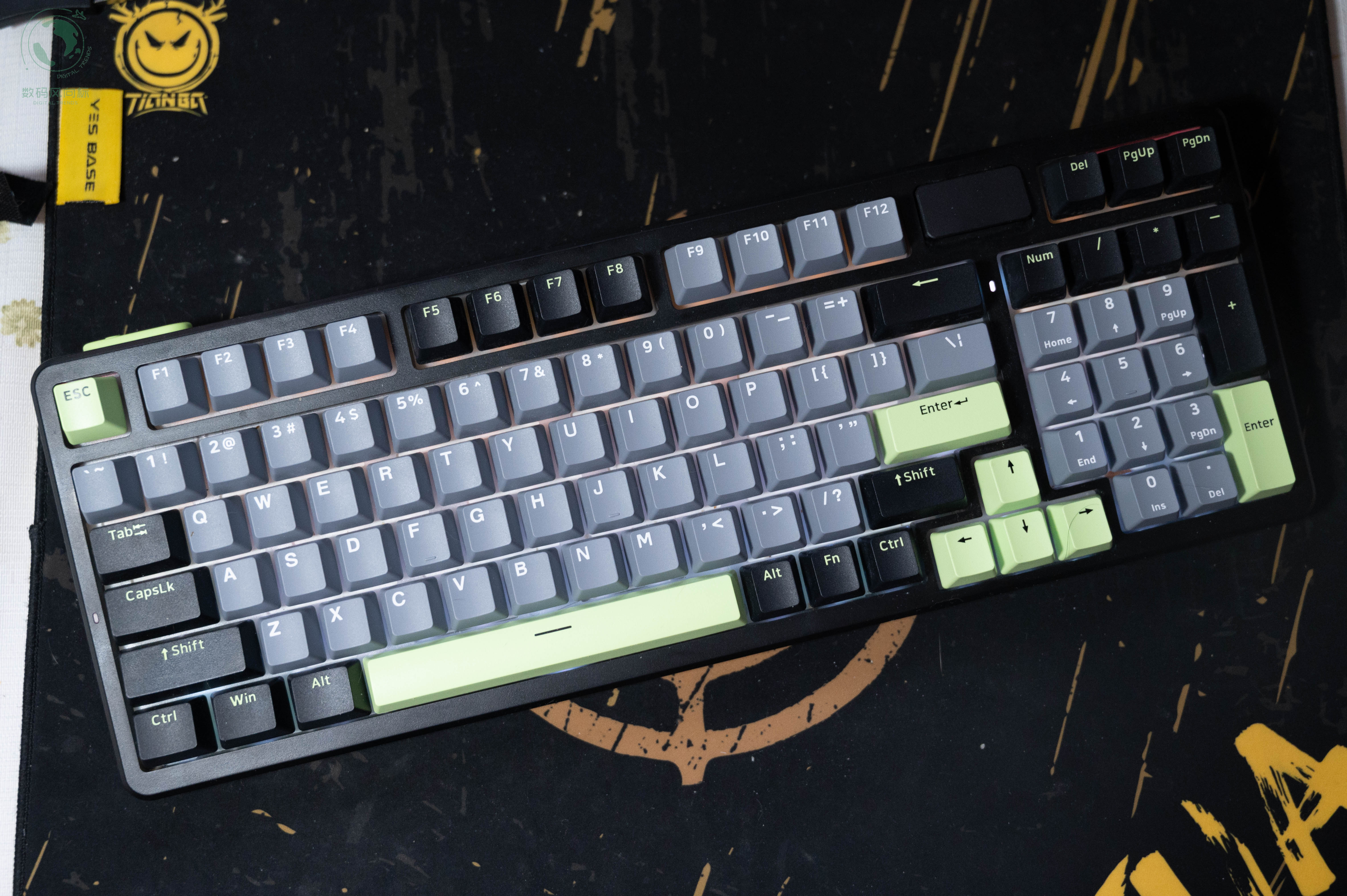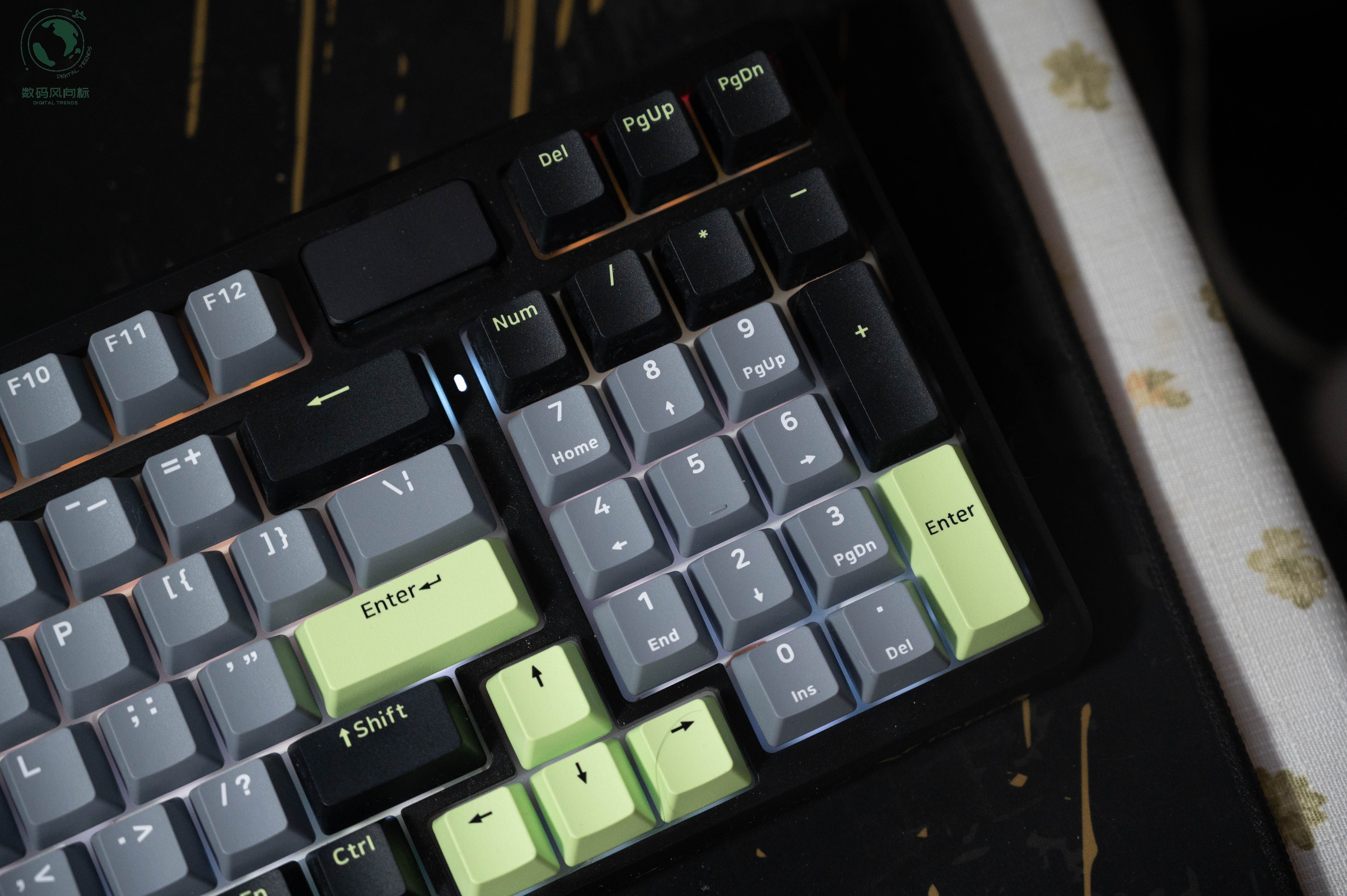 雷柏V700DIY-98第一眼就给人一种“这键盘有点东西”的感觉。我选的是黑灰绿三色的搭配,既沉稳又不失活力,放在桌面上不会太过花哨,但细看之下又能发现设计者的用心。
