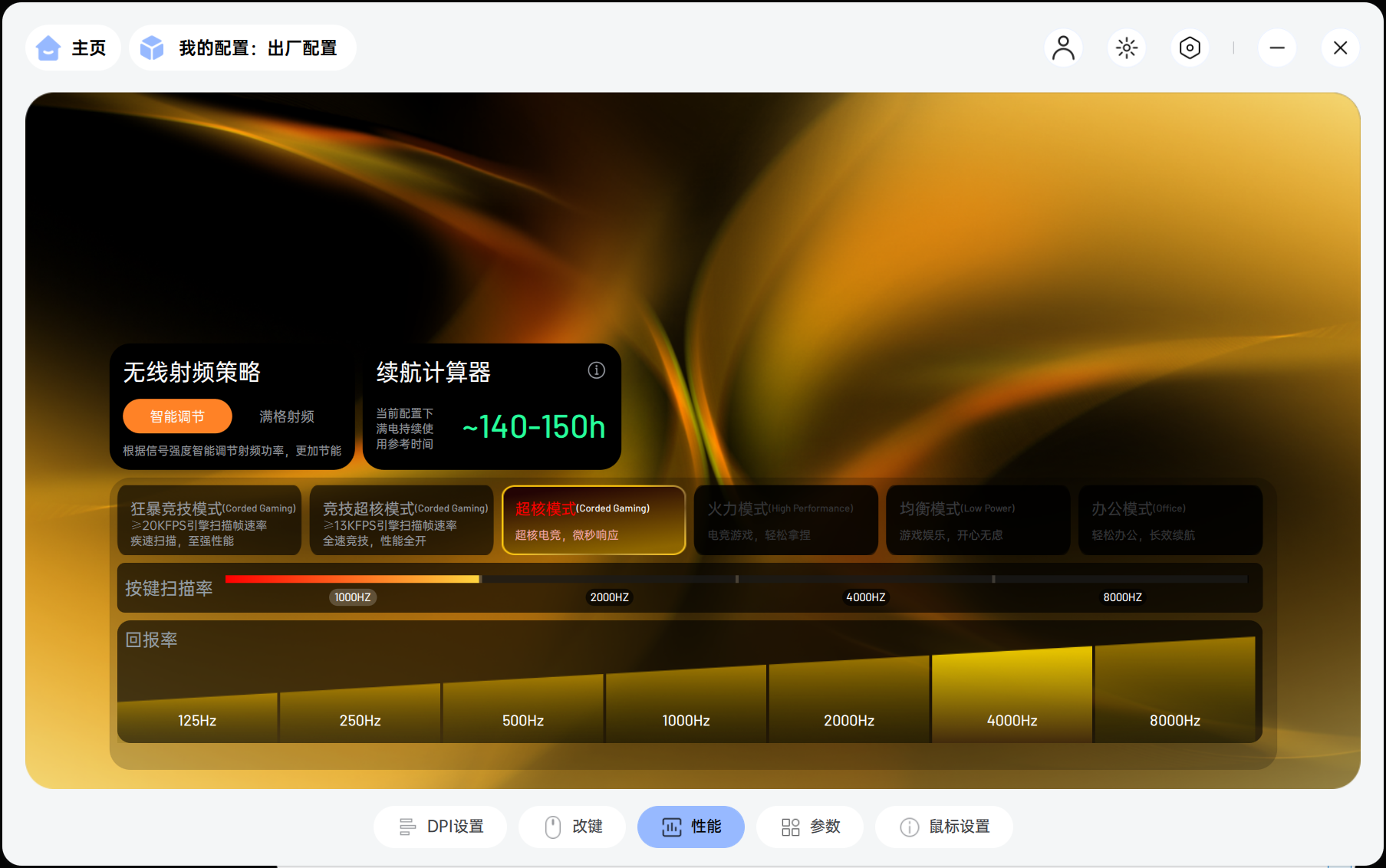 比如,当我玩《三角洲行动》时,系统会自动切换到游戏模式:键盘的回报率提升到1000Hz,鼠标的DPI调整到3200,同时启用我为游戏定制的一系列宏设置。而当我切换到办公场景时,设置又会自动调整回办公模式:键盘灯效变得柔和,鼠标DPI降低到1200以便更精确地进行设计工作。