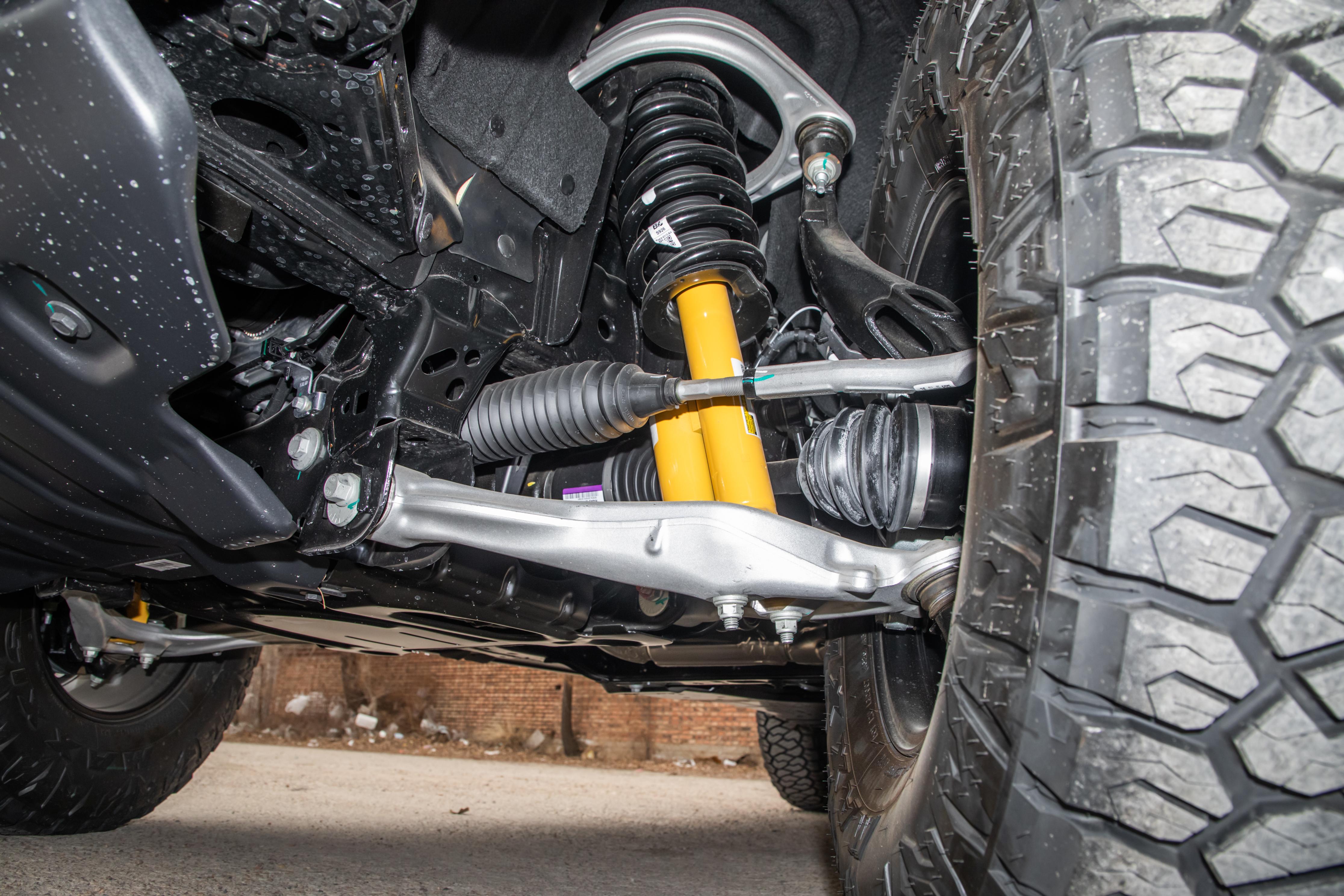 量产版的H.O.S.S.赛级悬挂,保留了赛车悬挂的核心调校逻辑,拥有较长行程,能较好地吸收路面的颠簸和冲击,减少车身起伏,让车辆在越野时更稳定。无论是高速穿越沙地,还是低速攀爬岩石,这套悬挂都能发挥作用,高速时能过滤大部分路面震动,降低车内人员的不适感,低速时能提供足够的支撑力,让车轮更好地贴合地面,提升抓地力。和普通越野车型的悬挂相比,H.O.S.S.赛级悬挂的特点是兼顾了越野性能和日常舒适性,不会因为追求越野性能而过度牺牲日常行驶的平顺性,也不会因为兼顾舒适而明显削弱越野支撑。 智能前防倾杆断开功能,是从极限赛车和赛道赛事中演化而来的配置。