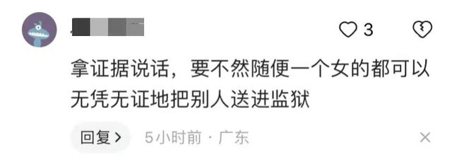 有网友称:拿证据说话,要不然随便一个女的都可以无凭无据的把人送进监狱。