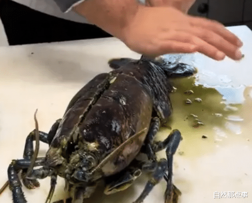 这只龙虾体型硕大,壳色鲜艳,看上去活力十足,本该是极其新鲜的。但就在他清洗时,意外地发现龙虾身上有一些奇怪的绿色液体渗出,颜色深沉,好像有点奇怪。