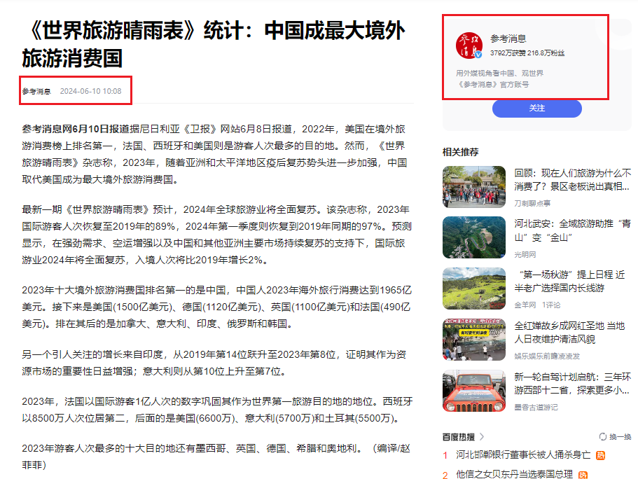 参考消息:《世界旅游晴雨表》统计:中国成最大境外旅游消费国