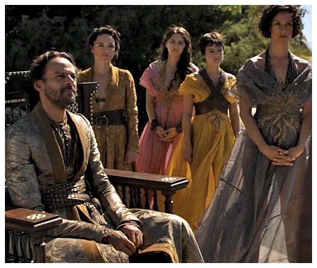 剧中把道郎·马泰尔塑造成了一个忍辱负重、不愿复仇的残废老大爷,原著中的多恩亲王恰恰是不露痕迹把仇恨深埋于心,老谋深算的狠角色,他一直与瓦里斯密谋着帮助坦格利安复辟的大计,如果不是乞丐王非要马王给他金王冠,韦赛里斯将成为多恩女婿,王朝复辟指日可待;乞丐王死了,道郎赶紧又派出了自己的二儿子东寻丹妮莉丝,意欲继续履行婚约迎娶龙母,再图复辟;道郎的继承人小公主与奥伯伦的三个成年私生女在道郎将计划和盘托出之后,立刻放下为奥伯伦复仇的计划,团结一致同舟共济,欣欣然奔赴各自的战场。至于剧中“最恶毒”的艾拉莉亚,原著里却是一个性格柔和、深爱子女的女人,她虽然也想为奥伯伦报仇,但更担心自己的孩子像三个姐姐一样醉心于复仇而丧命,反而期待着与兰尼斯特的仇恨到此为止。