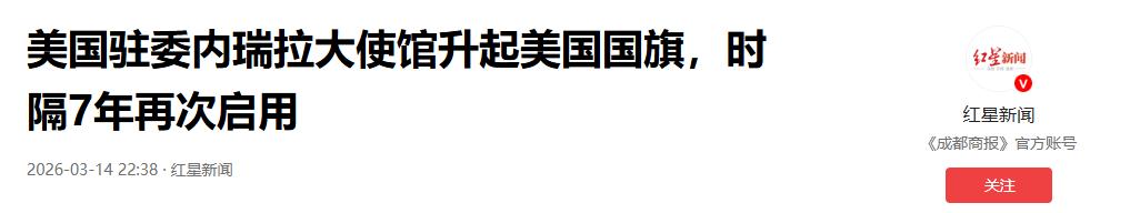 参考信息1:《美国驻委内瑞拉大使馆升起美国国旗,时隔7年再次启用》红星新闻2026.03.14