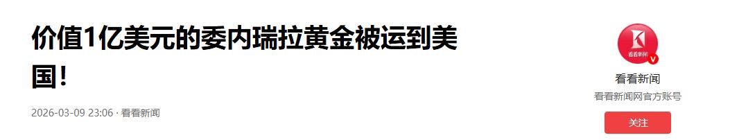 参考信息2:《价值1亿美元的委内瑞拉黄金被运到美国!》看看新闻2026.03.09