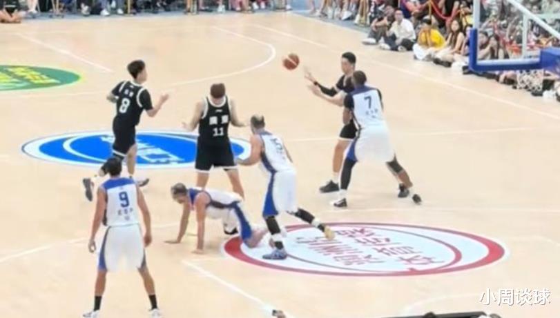 10月19日晚上的比赛,广东队在热身赛中以99-77大胜西班牙赫罗纳队。这场比赛的过程中可能是对方输分太多,输急了眼,赫罗纳队的14号球员在场上频繁挑衅广东队的后卫赵睿,甚至有锁喉、抓脸等危险的动作。这个时候老队长周鹏挺身而出,给赫罗纳队14号球员上身体对抗警告对手,但是对手并不知道收敛,所以周鹏选择强硬的回击,用手肘部击打对手14号球员致其倒地,这个时候裁判才终于吹停了比赛。
