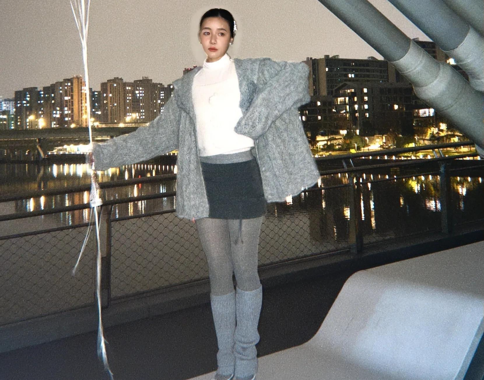 比如她在近期拍摄的灰色裤袜套装的写真,修长的双腿将普通的装扮穿出不一样的美感。