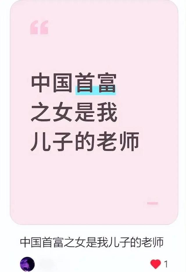 有家长发帖《中国首富之女是我儿子的老师》,字里行间全是骄傲:“从头到脚看不出富豪爹,静心做教育,比某些炫富网红强多了。”