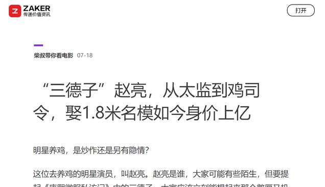 ZAKER——2024-07-18《“三德子”赵亮,从太监到鸡司令,娶1.8米名模如今身价上亿》