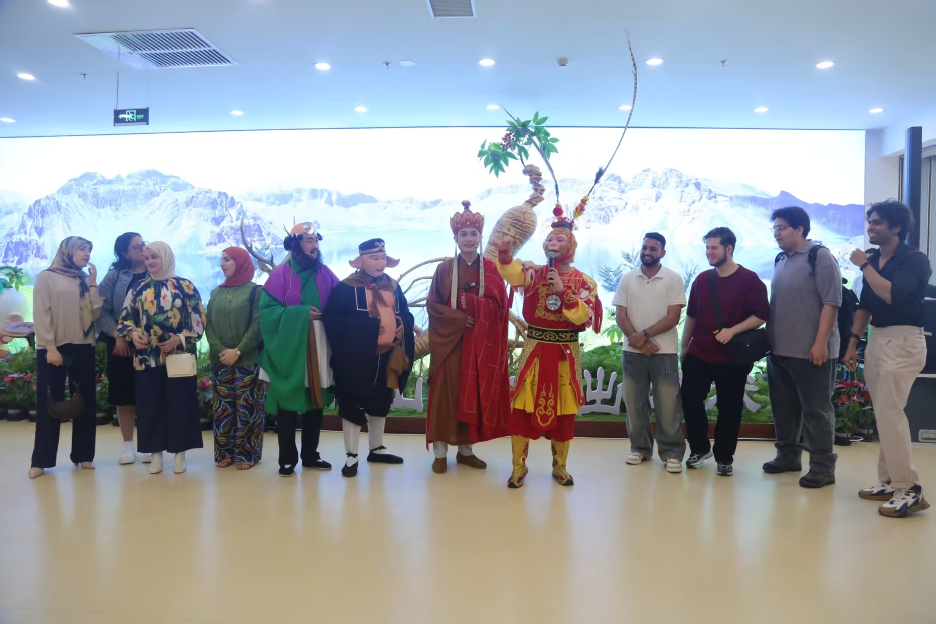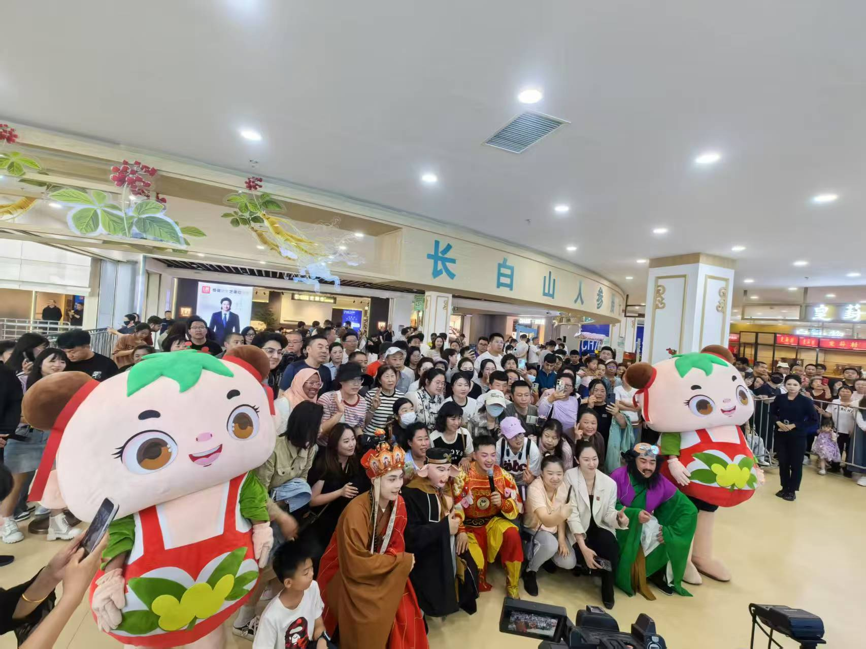 金箍棒舞动千年参韵,神仙团引爆消费热潮。10时30分,佩戴人参元素的“雪饼猴”率西游天团,化身“人参文化使者”来到活动现场,先后探访宣上医、长白山人参、御官印、皇封参等品牌展位,与高校学生进行产品互动推介。随即主舞台响起《西游记》经典配乐,手持金箍棒的“雪饼猴”腾跃登场,一段“参灵棒法”表演瞬间点燃全场,引得消费者阵阵呐喊。表演高潮处,憨态可掬的“参娃娃”卡通人偶来到舞台,与“雪饼猴”逗趣互动。“雪饼猴”邀请天团齐上阵,上演原创微型情景剧“人参护宝”,现场笑声此起彼伏,掌声雷动。文化交流没有边界,人参馈赠属于世界!活动设置了国际交流环节,来自摩洛哥等国家的留学生登上舞台,在“雪饼猴”的指导下,学习用汉语说“吉林人参好”“长白山人参好”“欧亚卖场人参馆棒”等特色宣传语,彰显人参文化国际传播力!活动带动了当日人参产品销售额的增长,线上直播曝光率直线上升,“文化引流+场景消费”模式成效显著。