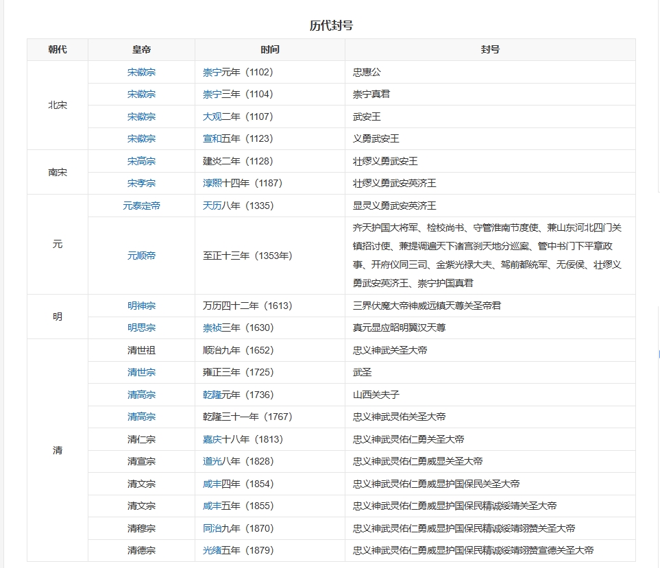 从败军之将到“武圣”归功于统治者造神在唐代以前,关羽不过是武庙中平平无奇的普通名将罢了。北宋徽宗至明清时期为稳固统治,对其不断追加了多个封号。