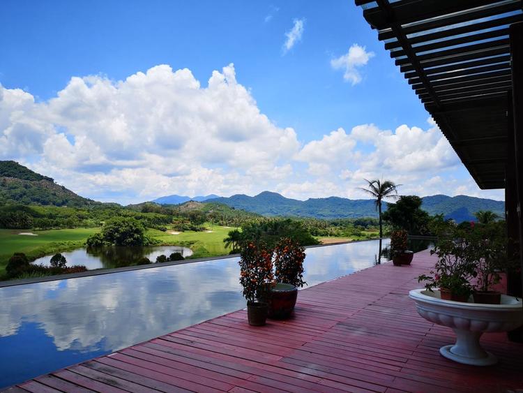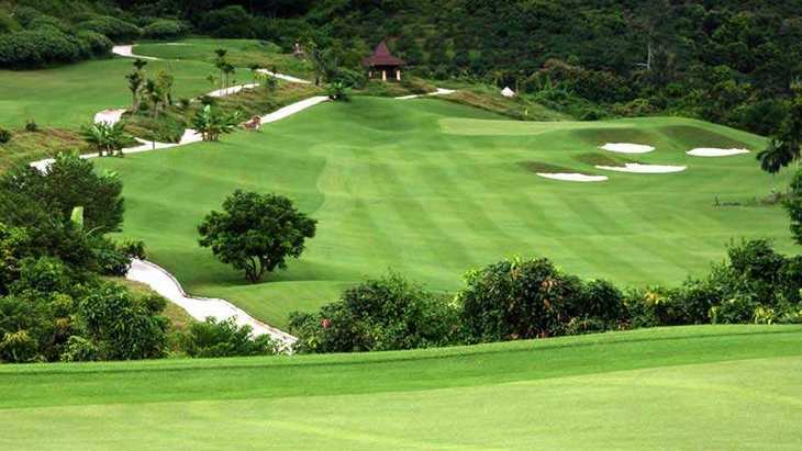 打球时,球道较窄且部分区域湿软,对开球稳定性要求较高,果岭速度中等(约8.5),但起伏变化可能影响推杆判断,高差点选手需注意救球成功率。站在神牛场5号洞可俯瞰海棠湾与蜈支洲岛,山水相映成趣。