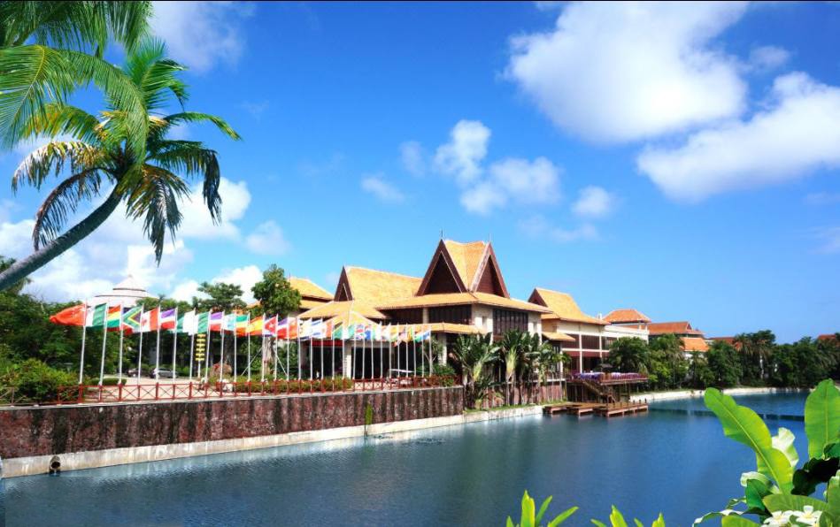 其建筑外形灵感源于侧卧凝望东海的神牛,毗邻三亚湾路及东线高速公路,距市区约30公里。利用自然山地、丘陵地形构建天然果岭与球道,保留182米原地貌落差及岩石、湖泊等天然障碍,形成高挑战性布局。