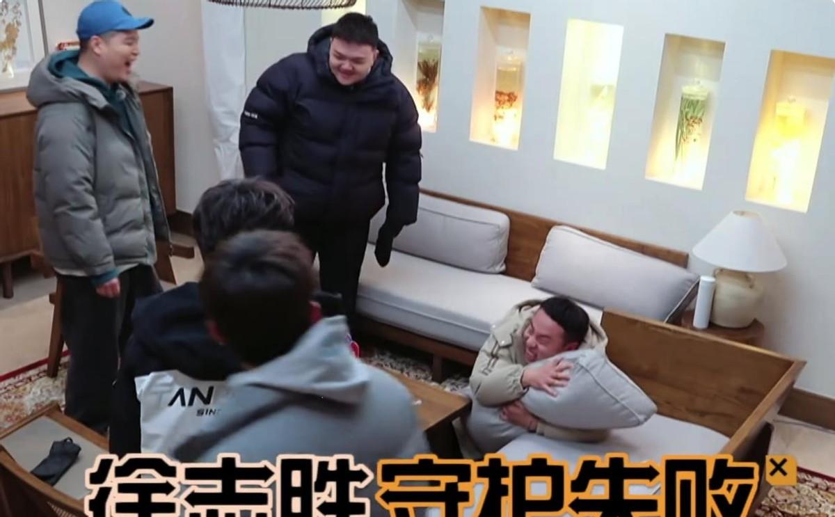 徐志胜坐在沙发上,表情复杂,坐立不安,陈赫的一举一动都牵动着他的神经,像极了做贼心虚的小学生。