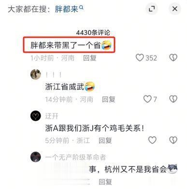 不少浙江网友纷纷冲到胖都来账号下怒刷:丢脸。