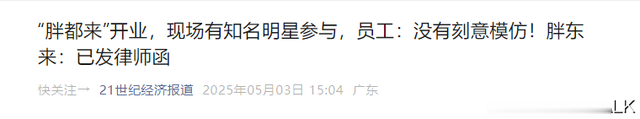 [1] 21世纪经济报道 2025-05-03《“胖都来”开业,现场有知名明星参与,员工:没有刻意模仿!胖东来:已发律师函》