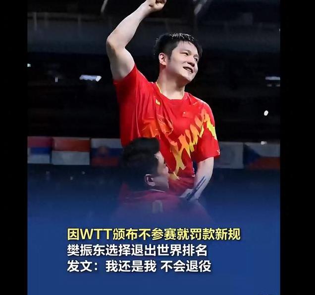 他的这篇文章发的过于突然,而对于退出世界排名的原因,樊振东也做出了解释,在最近WTT颁布的新规之中,规定了如果不参加比赛,就会进行罚款。