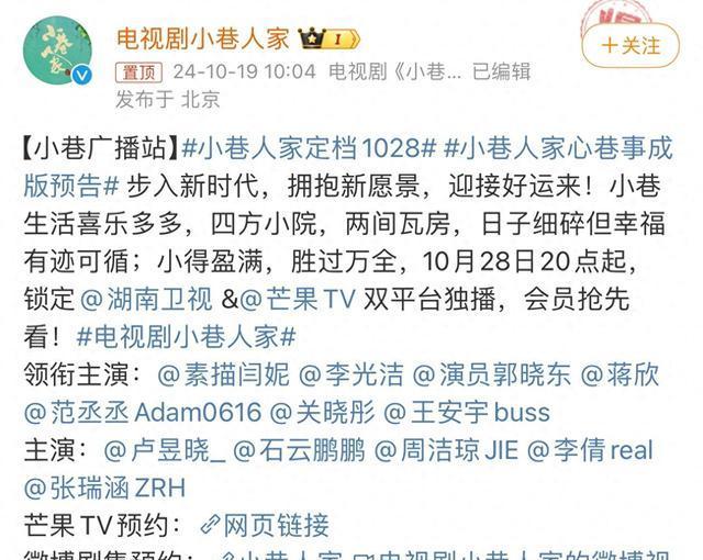 那么,《小巷人家》能否在播出后引发观众的热烈反响和持续关注呢?它能否在年代剧领域续写新的篇章呢?这一切都需要等到剧集播出后才能揭晓。但无论如何,我们都期待着《小巷人家》能够为我们带来一场视觉和心灵的盛宴,让我们在怀旧中感受生活的真谛和人性的美好。