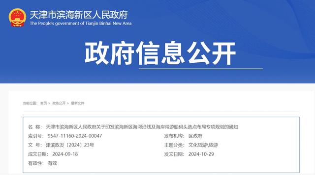 消息称,滨海新区按照规划选定了26处游船码头点位,分为近期、中期、远期三个阶段建设。