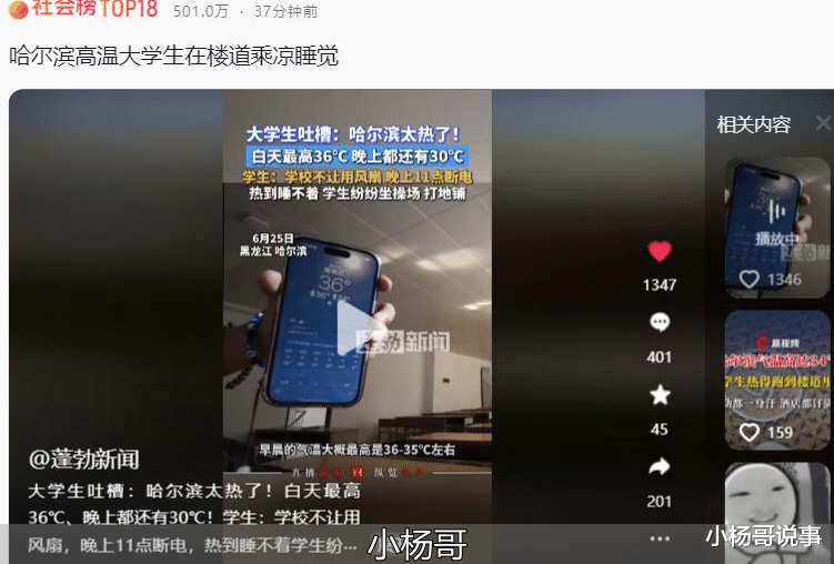 6月26日,位于东北哈尔滨的一所高校突然成了热搜的主角。正常来说,这个时候上热搜那妥妥是给招生助力的大好事谁能想到,它冲上热搜竟是因为学生们热得撑不住,纷纷在宿舍走廊乘凉睡觉,这画面成了热门画面。