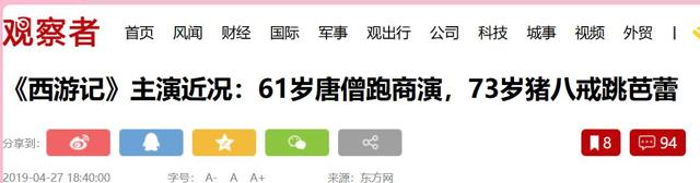 [1].官方媒体观察者网《《西游记》主演近况:61岁唐僧跑商演,73岁猪八戒跳芭蕾》2019.04.27