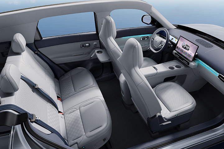 在车身尺寸上,虽然零跑A10长宽高只有4270/1810/1635mm,但轴距却做到了2605mm,整车尺寸和这个级别的热销选手比亚迪元UP非常接近,不过零跑A10拥有88.1%的超高得房率,让车内空间得到很好的释放。加上后排座椅还能够向上进行翻折扩展储物空间,有点“魔术座椅”内味了,完全符合家用需求。