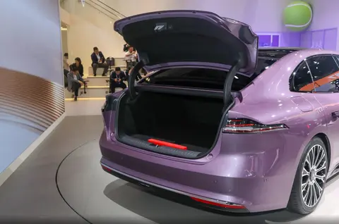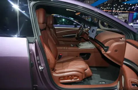 车灯里的华为百万像素智慧投影更绝,能投12款灯语,相当于给车装了套“表情包”。C柱的导流鳍片、主动进气格栅这些细节,既提升了科技感,又优化了空气动力学。站在车旁摸了一圈,发现这车“概念即量产”真不是吹——95%还原了广汽1 Concept概念车的设计,线条流畅得像被风吹出来的,行政级稳重和运动轿跑优雅居然能精致融合,这设计水平,妥妥的“未来感教科书”。