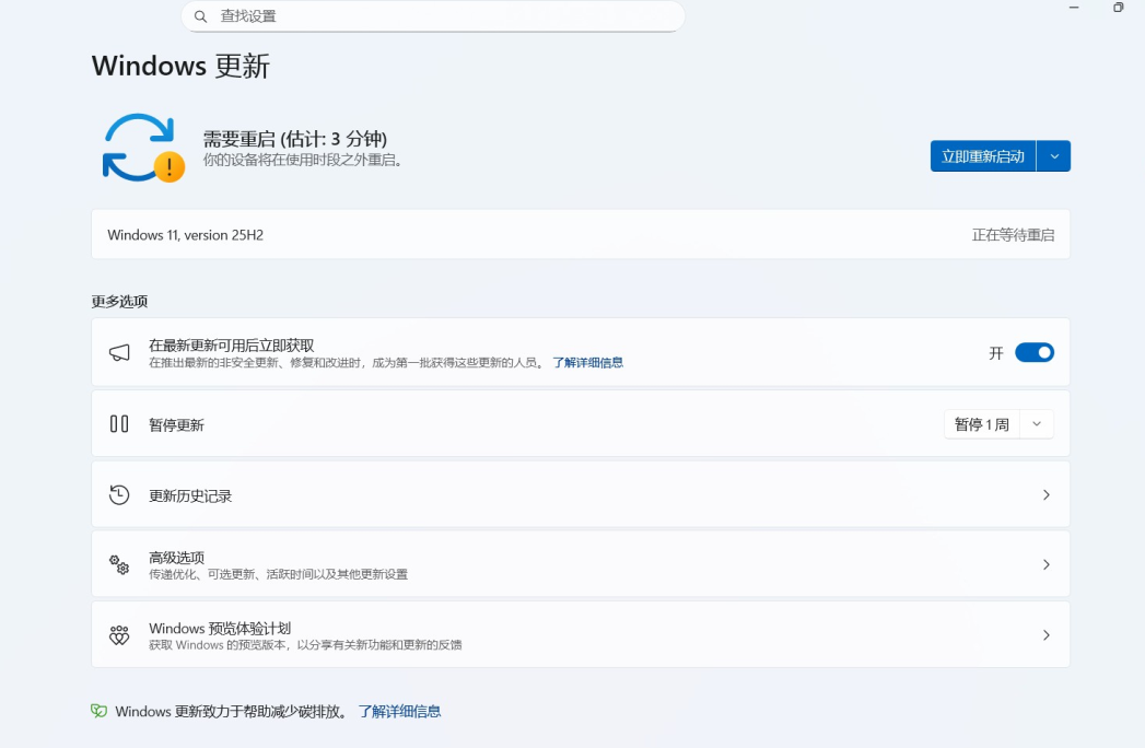 这就是为什么 25H2 的更新过程如此之快,往往只需要一次快速重启,体验上更像是一个普通的周二安全补丁,而不是一次“大版本迭代”。