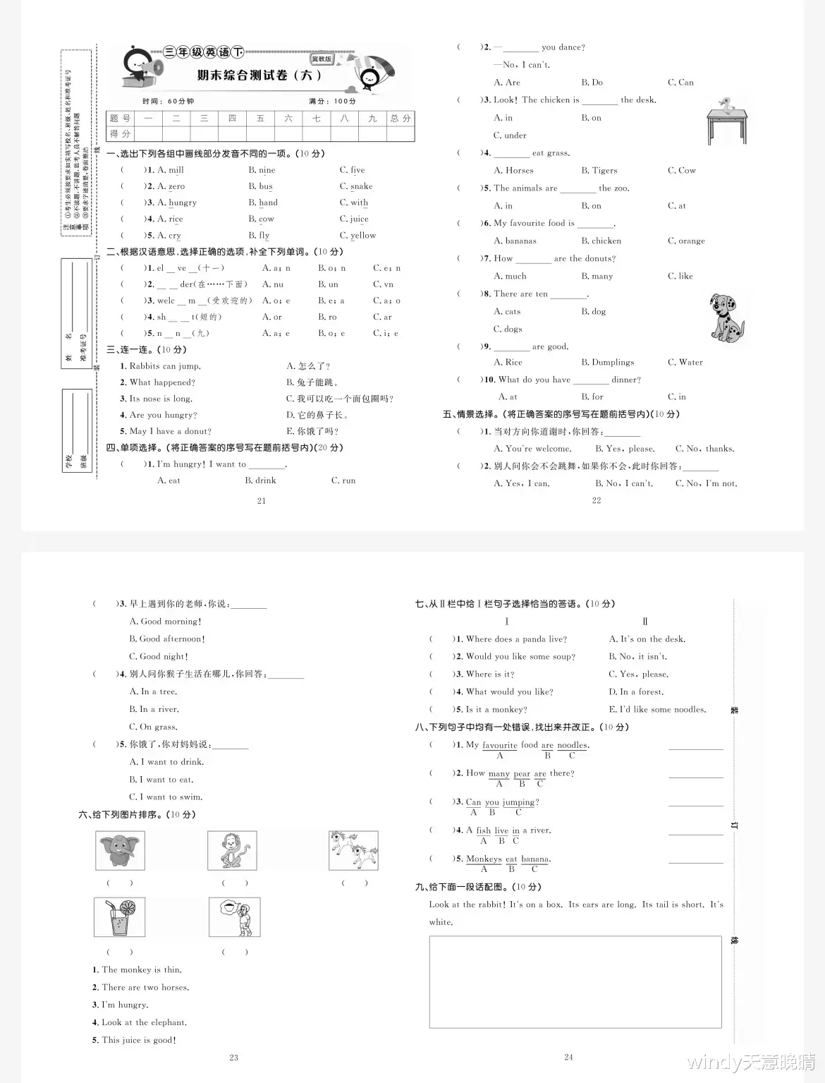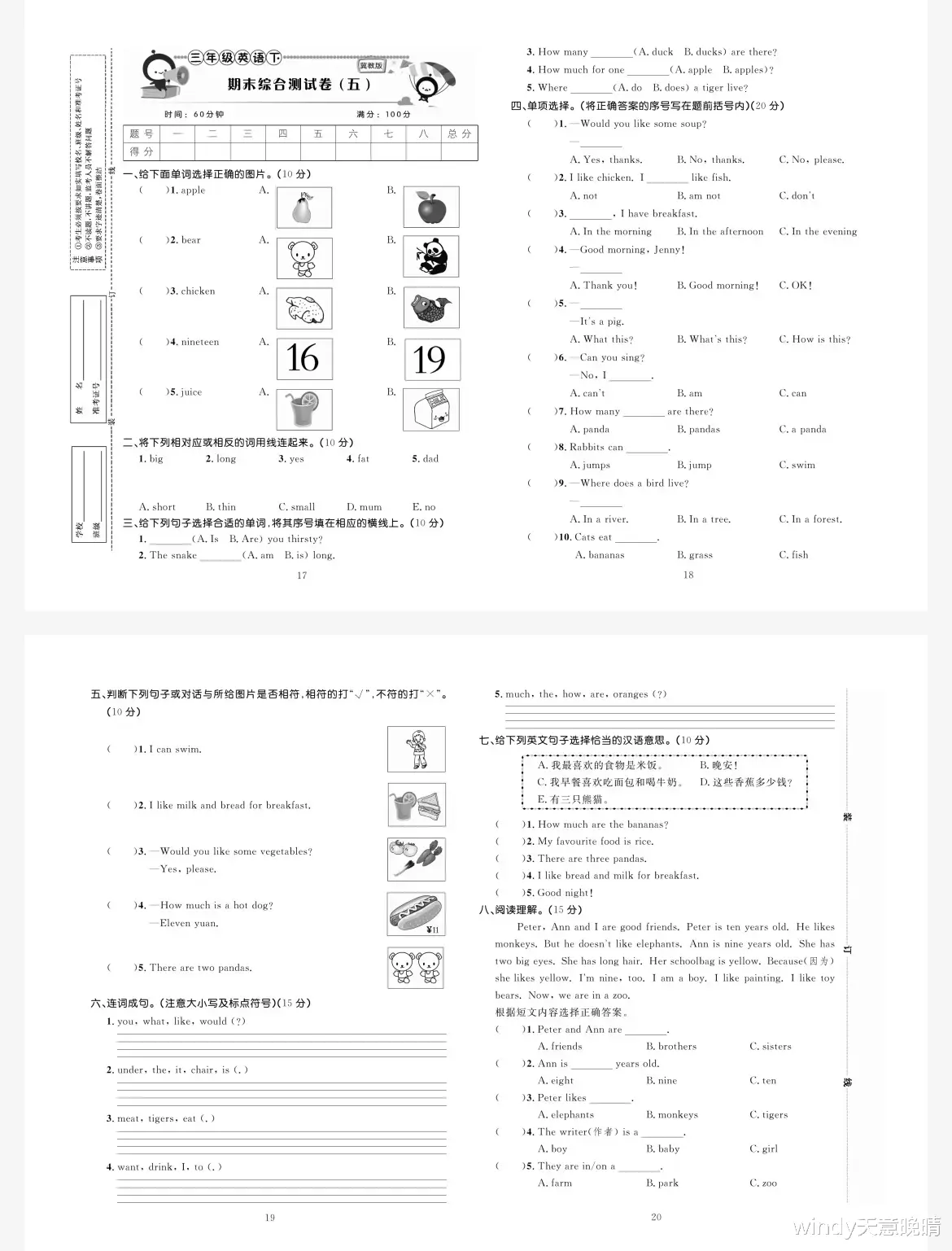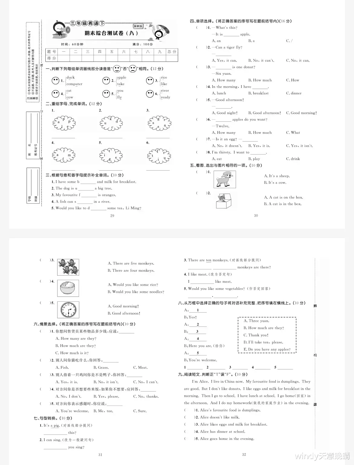 三年级英语考试侧重基础应用,避免过度刷题,保持每天20分钟高效复习即可。考前1天重点看错题本,保证简单题不丢分!