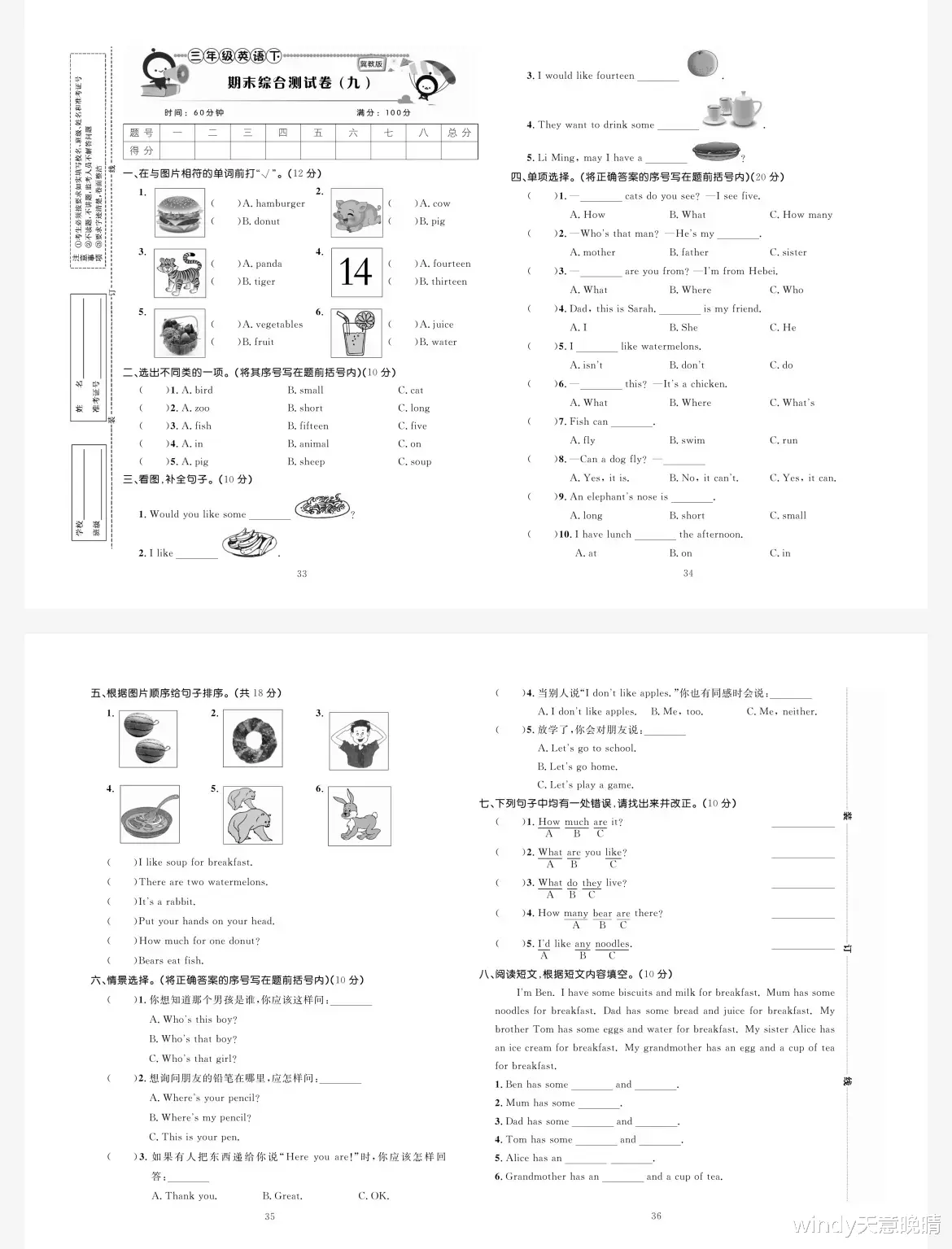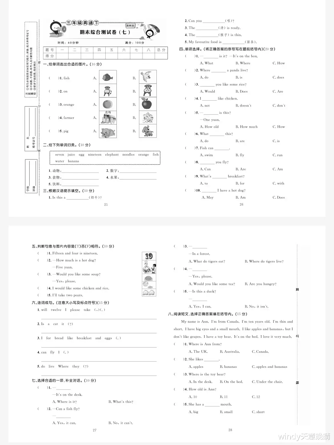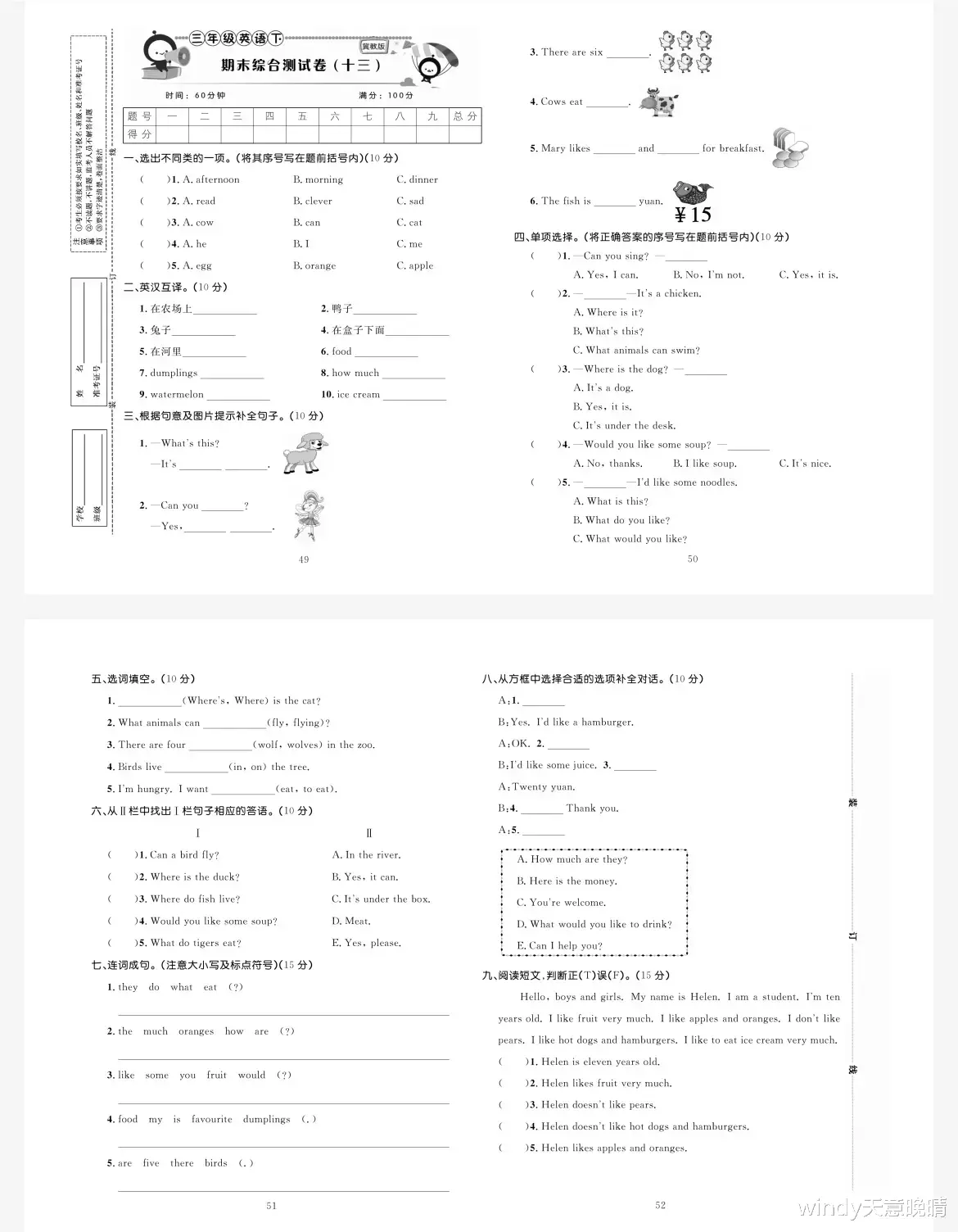 三年级英语考试侧重基础应用,避免过度刷题,保持每天20分钟高效复习即可。考前1天重点看错题本,保证简单题不丢分!